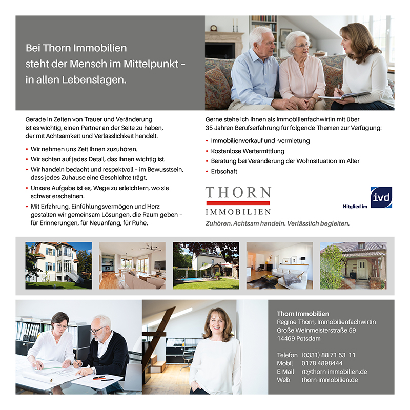 Telefon: (0331) 88 71 53 11 und Mobil 0178 489 84 44, Telefax: (0331) 88 71 53 13, Mail: anfrage@thorn-immobilien.de, Web: www.thorn-immobilien.de